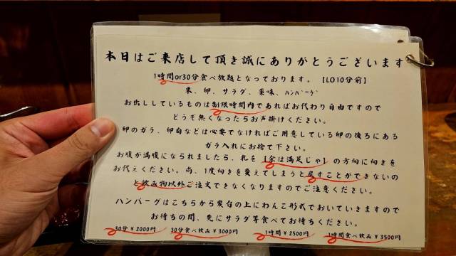 しかも「ご飯おかわり無限!」、「卵おかわり無限!」、「サラダおかわり無限!」と、限界まで食わす気マンマンの記載も。