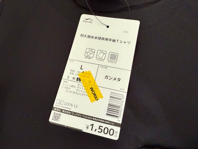 今回購入した水陸両用のシャツとパンツはどちらも1500円。特徴も同じで「耐久撥水」「パッカブル(ポケットに収納できる)」「リップストップ(破れてもそれ以上裂け目が広がらない生地)」とのこと。こういうの待ってました。