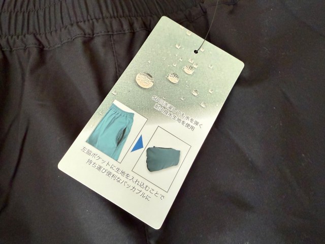 さて、商品タグ曰く「50回洗濯しても水を弾く耐久撥水生地を使用」とのこと。ポケットに生地を入れ込む方法も分かりやすい。こだわりの機能を丁寧に解説してくれる優しさがワークマンにはある。