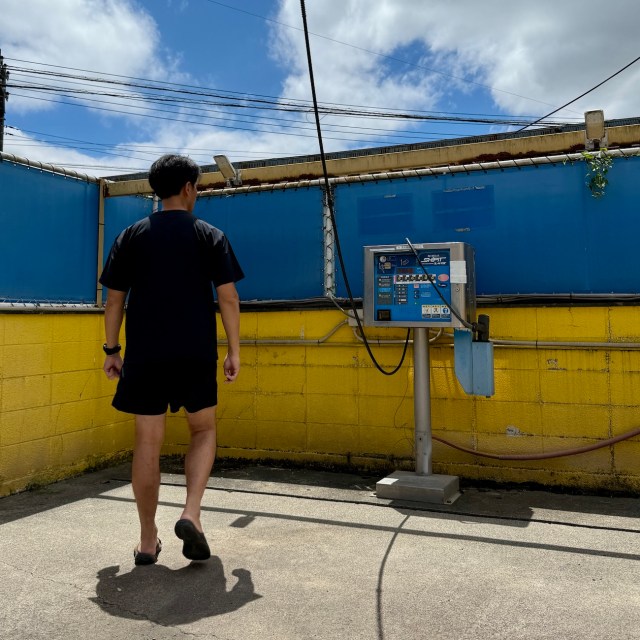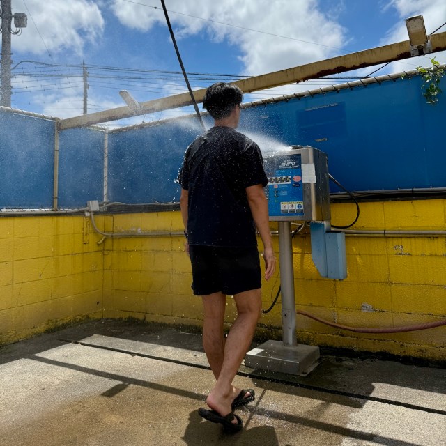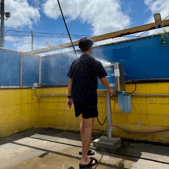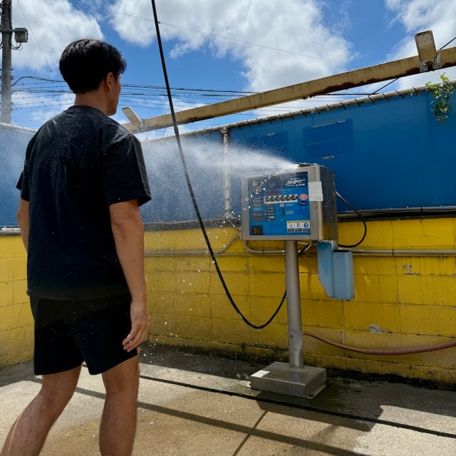 では今度は、水陸両用の実力を測るために水を浴びてみることにした。台風を想定して水をしっかり浴びてみたい。では行きます。
