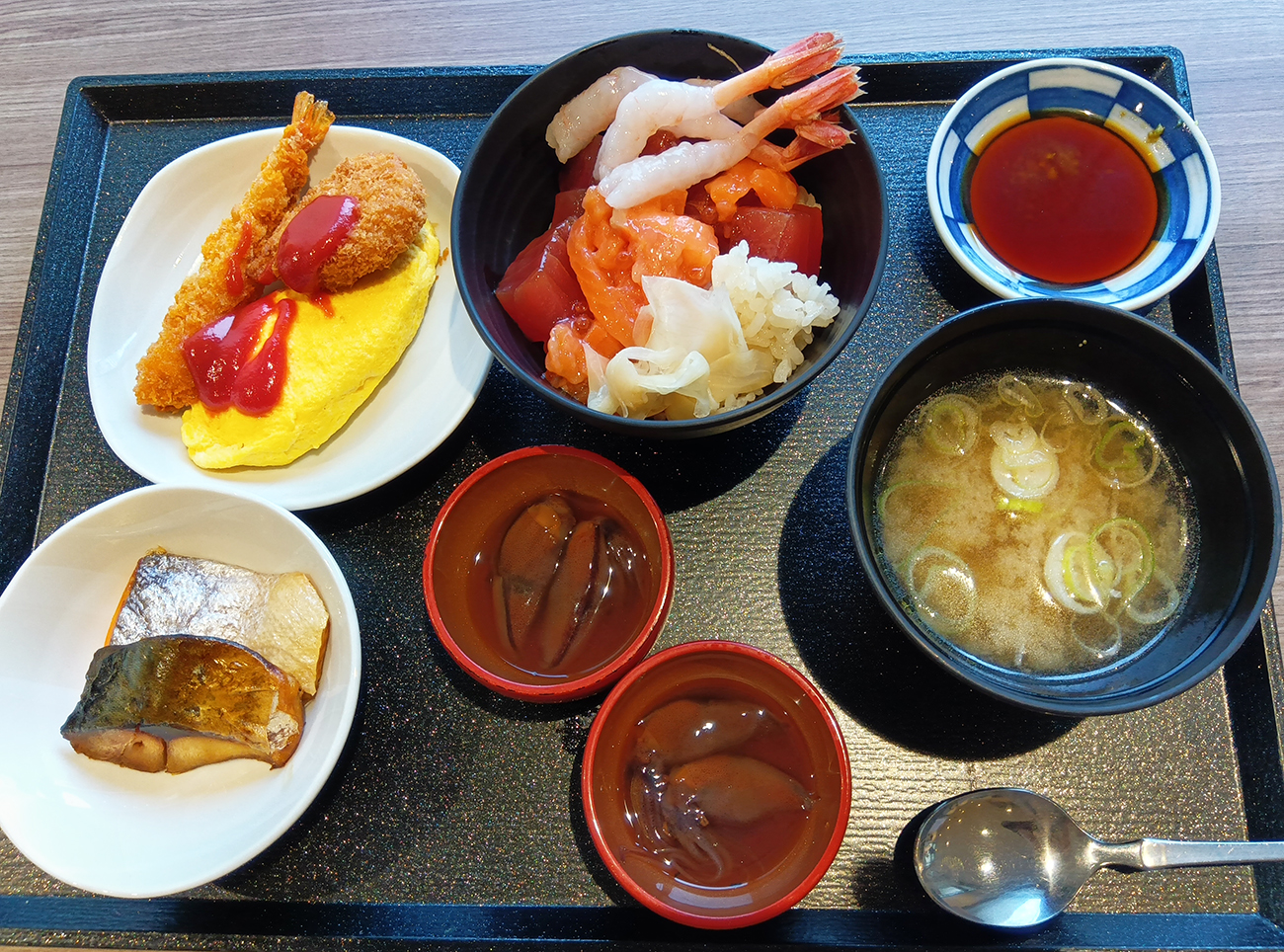 ちなみに、朝食バイキングでは、洋食みのある名物・ハントンライスや、甘エビ、サーモン、マグロが乗せ放題のお好み海鮮丼などが並び金沢らしい煌びやかさがある。