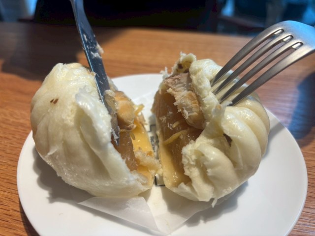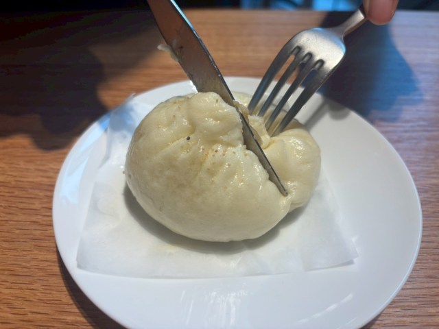待つこと約10分、じゃじゃーんと登場した包図まん。思っていたより大きくて、見た目もおいしそう。