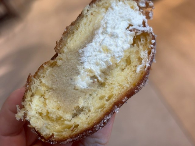 一見するとただの揚げドーナツだが、中には和栗のペーストと生クリームがたっぷり。