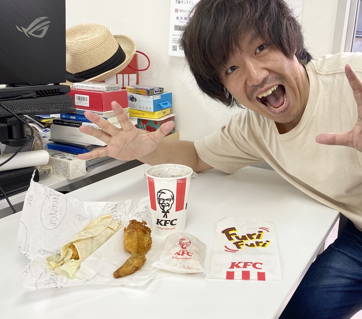中澤はよくばりセットの中でも和風チキンカツバーガー、さらにはカーネルクリスピーを選択。3種のチキンで勝利を掴みたい。