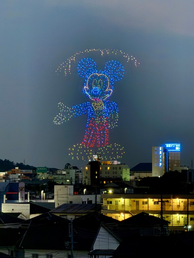 いやドローンショーを完全にナメてた……聞けば、1万5000機のドローンを使っているらしい。しかも会場ではディズニーの音楽に合わせてショーが繰り広げられているそうだ。そりゃあ50万人集まりますわ。