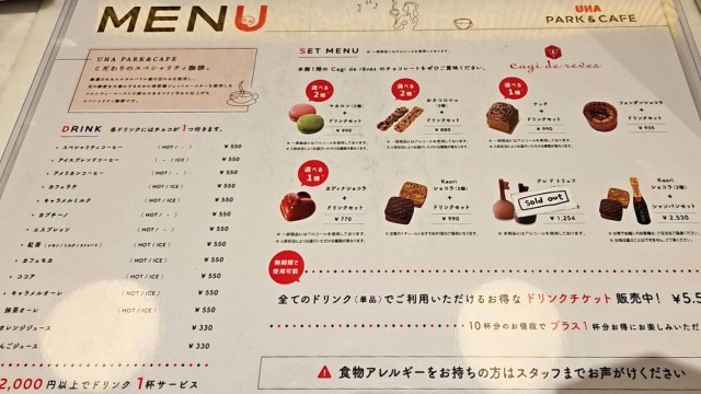 ドリンクは各種お菓子とセットで注文できるとのこと。