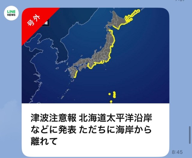 記憶はやや曖昧だが、「カムチャツカ半島付近で地震」「日本の沿岸に津波警報・津波注意報」といった言葉がテレビから聞こえてきた。不穏な空気が漂う。