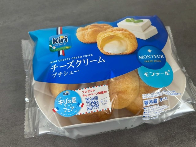 モンテールのプチシューに「キリ クリームチーズ」を組み合わせた一口スイーツで、その手軽さ故、食べ過ぎ注意報が発令されるレベル。