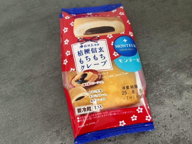 名前からして餅が入っているかと思いきや、実際は「きなこクリーム+黒蜜ペースト」を、もちもちのきなこ生地で包んだクレープ。