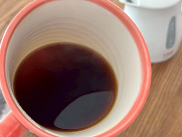 大きめのマグカップを使用したので、見た目のバランスがいまいちだが、とてもいい香りが漂っている。