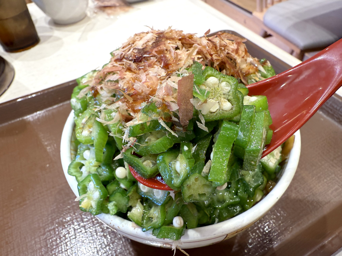 すき家には「チー牛」を筆頭に、キムチ・ねぎ玉・鬼おろしポン酢……等々、常時複数の牛丼があるが「かつぶしオクラ牛丼」のウマさは最強クラスと申し上げていいのではないだろうか? というか、マジでウマい。好き。