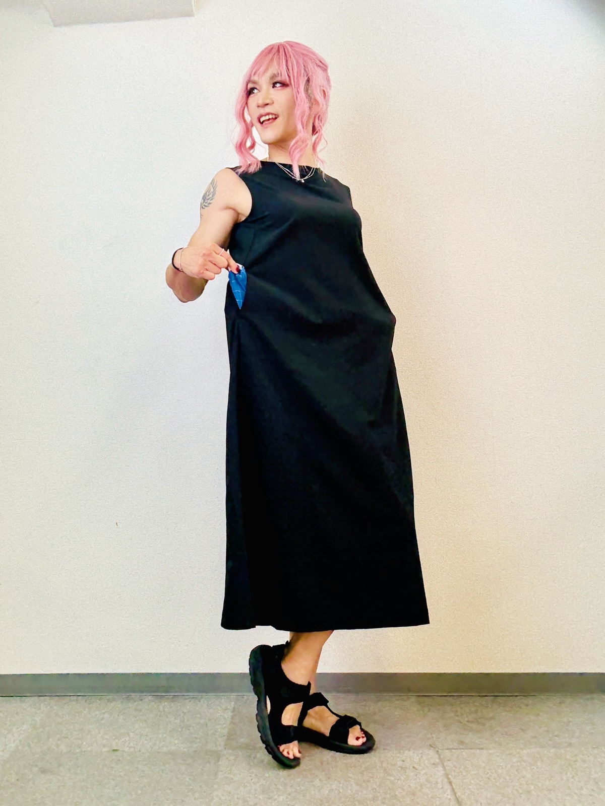 ▼この時の洋服も無印の黒ワンピだよ