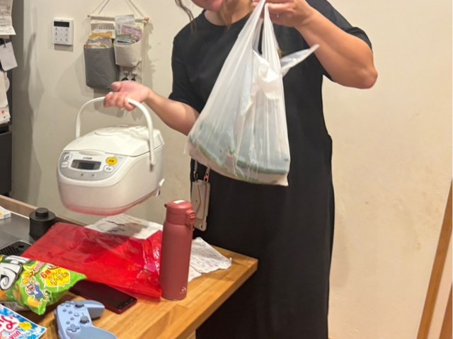 入れ替わるように別のママが登場。手に持っていたのは炊飯器。