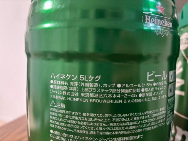 参考リンク:Amazon「ハイネケン 5Lケグ Heineken Keg」、ハイネケン公式 楽天市場店