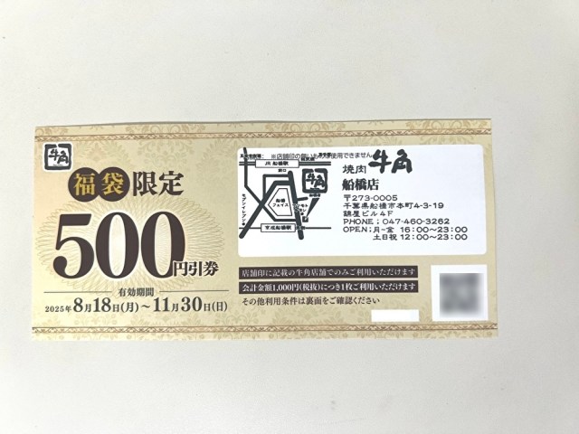 牛角の『夏の福袋2025』は、8000袋限定で店舗のみで販売されている。店舗によって10袋~120袋の在庫を揃えているとのこと。私(耕平)は、販売日当日に地元千葉県にある「牛角 船橋店」に足を運んだ。
