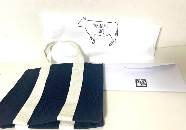 ▼中身はトートバッグにお食事券、ビール1杯無料クーポン。牛角ファンは今すぐ店舗に急げ!
