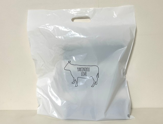 価格は税込5000円。店員さんが店舗の奥から、福袋を持ち出してきた。袋にはお馴染み「YAKINIKU LOVE」が描かれている。