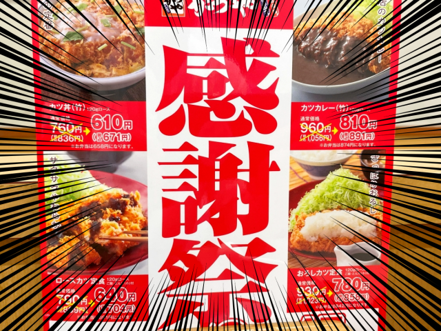 【え?】かつやが今年も「年末感謝祭」を開催! 人気4品が200円引きになるも…カツカレーの値段を見て震えた
