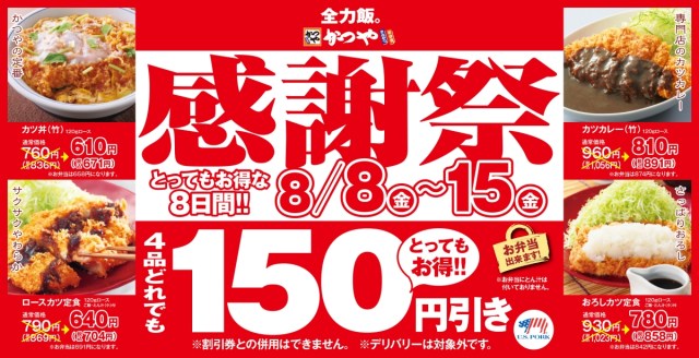 これは「かつや」からの遅い暑中見舞いなのか? 本日2025年8月8日より8日間限定で『夏の感謝祭』が開催中である。逆に言わせてもらたい。どうもありがとう。