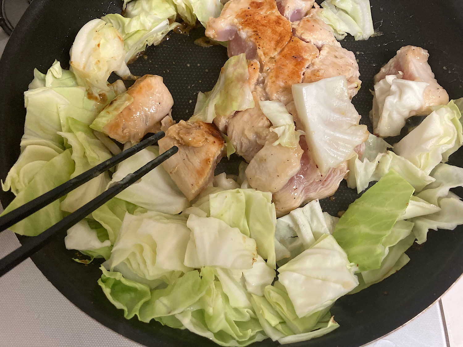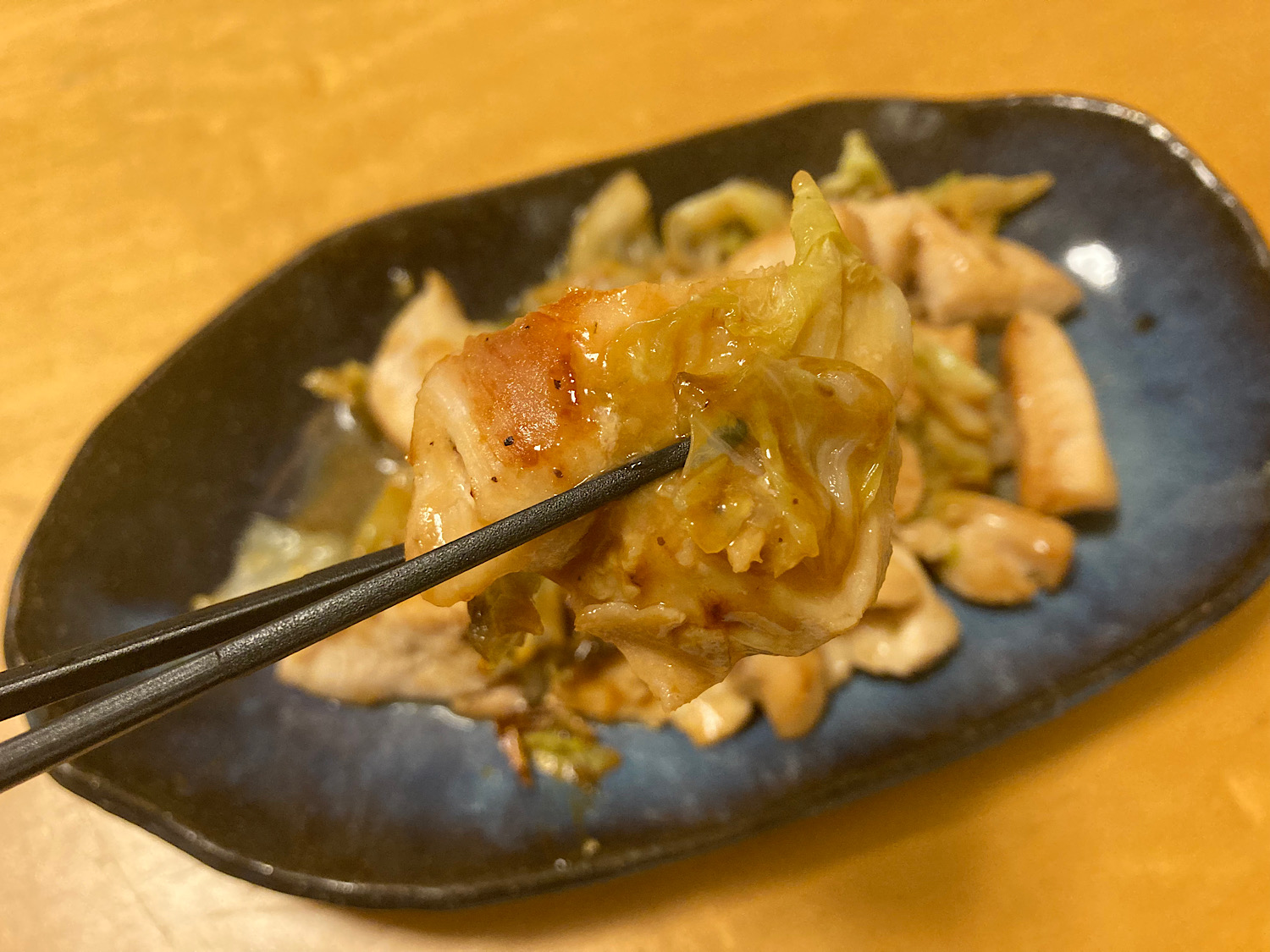 めちゃデカい鶏むねを使ってしまったため味が薄くなるかと危惧していたが、それも全然平気である。キャベツも入れてちょうど良い味だったので、もしかすると規定量で作るとちょい濃いめかもしれない。