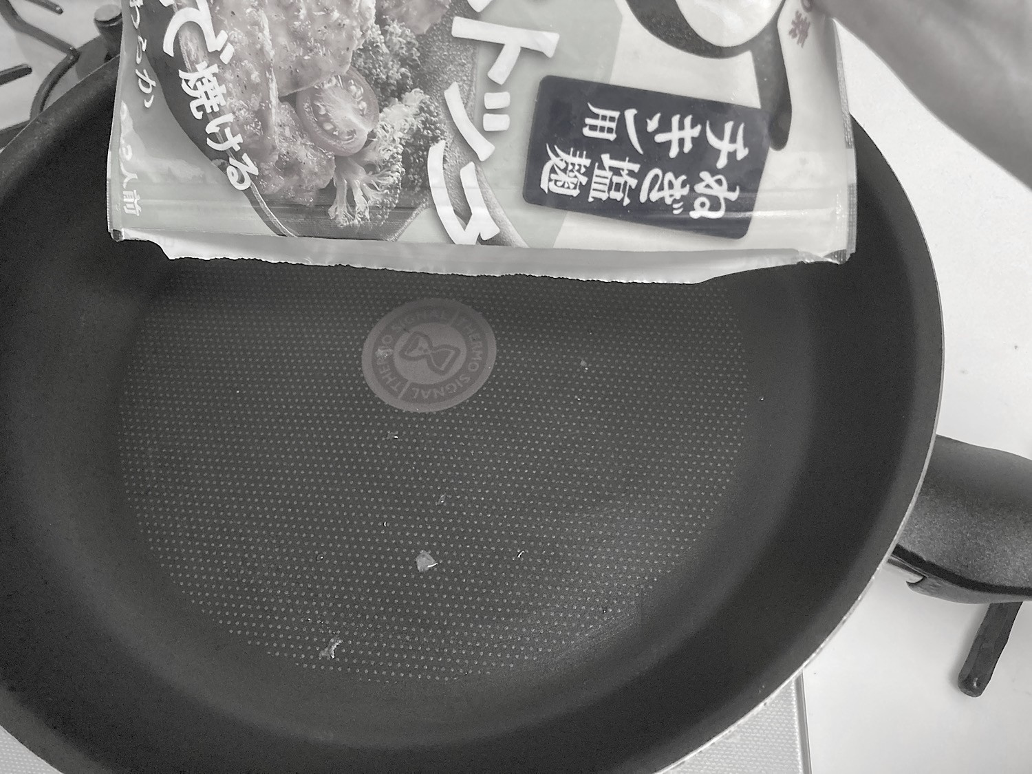 なんと焼くときは解凍いらず。凍ったままフライパンに出して火を通すだけで良いらしいのだ。