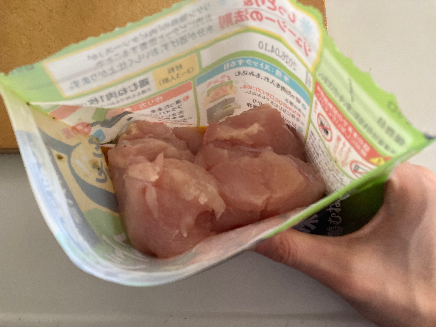 切った鶏肉をこの袋に入れて揉み込み、その状態で冷凍するだけで、それぞれの味付けが完了するという商品。いわゆる下味冷凍というやつなのだが、すごいのはここから。