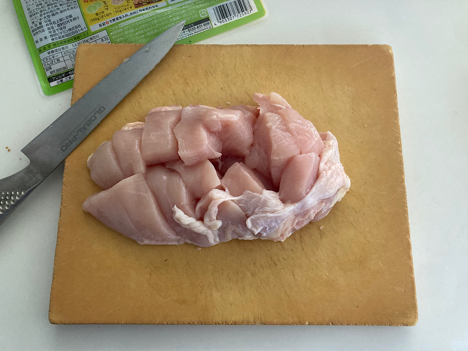というわけで試してみることにした。鶏肉を用意し、1cmほどの分厚さに切る。