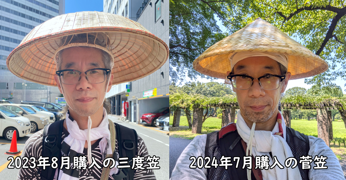私(佐藤)が最初に菅笠(三度笠)を使ってみたのは、2023年のことだ。当時、Twitter(現:X)で三度笠が日除けに良いと話題になり、その使用感をたしかめるために購入したのである。
