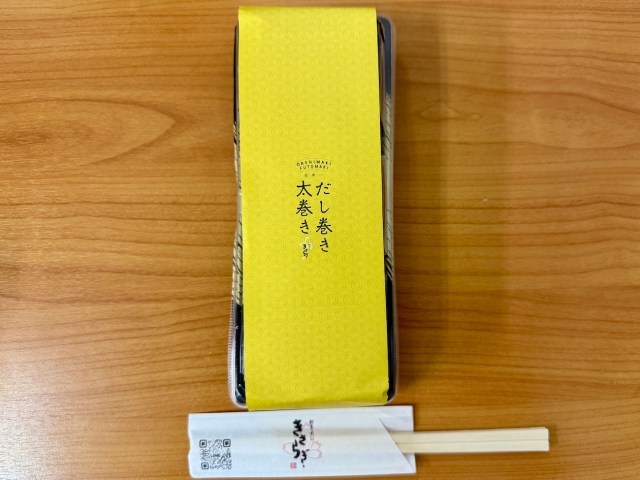 聞けば、愛知県豊田市の人気店「割烹・寿司 きさらぎ」の太巻きらしい。「ツナマヨだし巻き太巻き」「明太チーズだし巻き太巻き」など種類豊富。今回はとりあえず定番の「だし巻き太巻き(1080円)」を1本購入することにした。