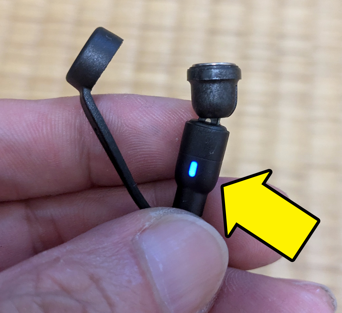 ケーブルにはキャップがついており、これを外す強力な磁力で金属にくっつく。繰り返すが使用していないときはキャップをしておかないと、通電状態でどこにでもくっついてしまうので要注意。