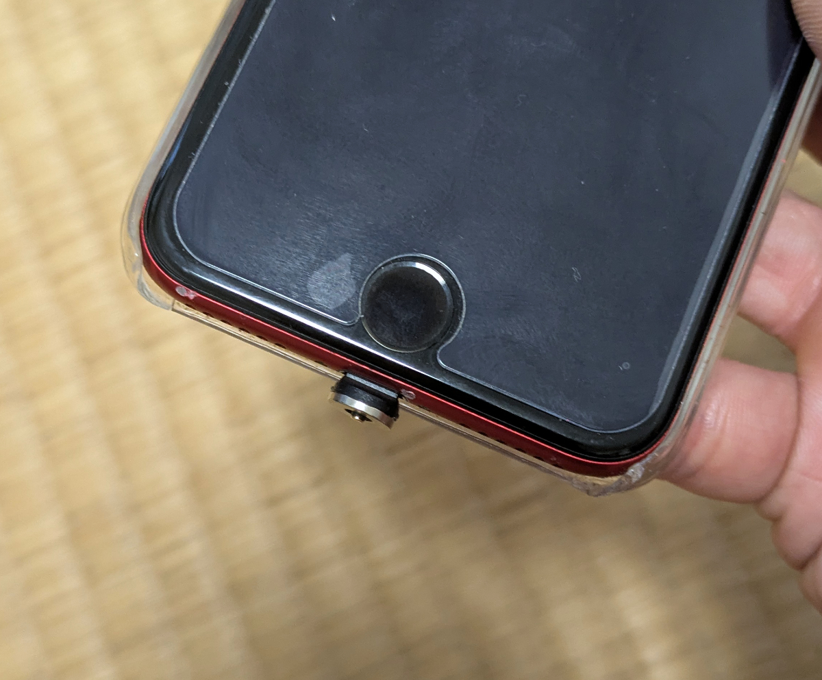 ではさっそく使ってみよう。iPhoneSEにLightning端子を装着する。