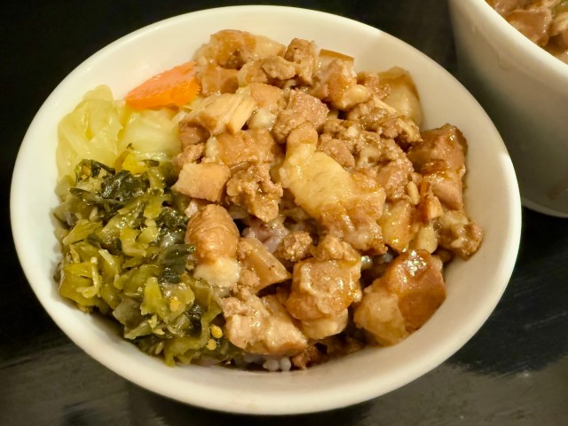 一方でルーローハンは丼が小気味よく重い。角切りの豚バラはとろりとほどけ、甘じょっぱいタレに八角の香りがほのかに漂う。テンポ良くかき込めるのが最高だ。