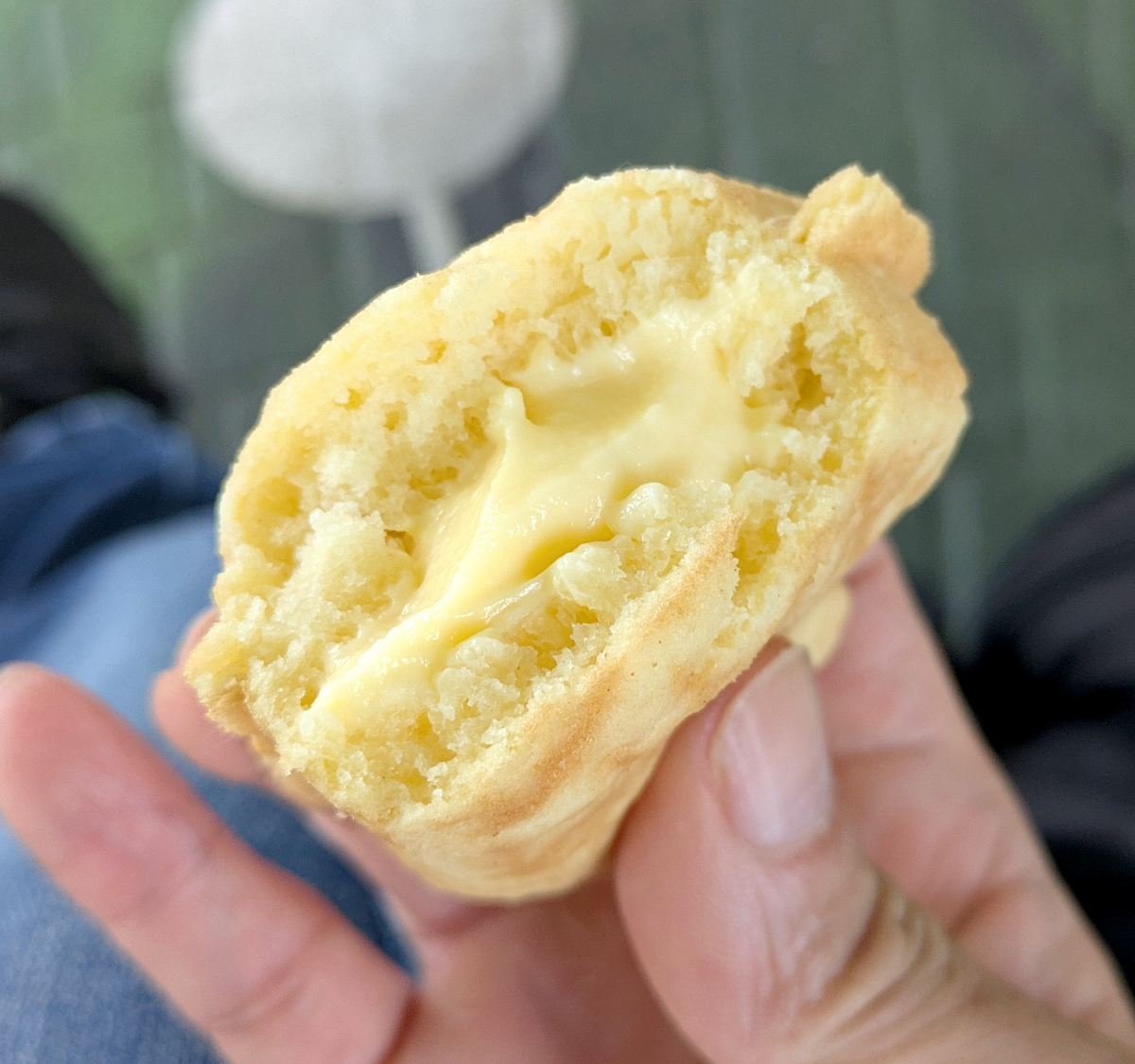 そしてカスタード。むっちゃん万十の最大の魅力は生地にある。というのは、先ほどのハムエッグのような総菜系にも合うし、カスタードのようなスイーツ系にも合う。どんな味とも相性の良い万能な生地だ。フワフワのカステラのような食感で、ほのかな甘さがクセになるんだよなあ~。