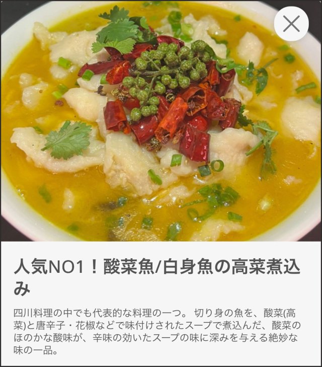 で、次に提案してくれたメニューが「酸菜魚(1628円)」というものなのだが、それを見た瞬間……