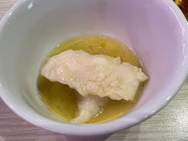 ……というのが第一印象。ただ、周りのスープの影響か鍋とかに入っているタラよりも脂が多いかも。ややオイリーなタラといったところか。