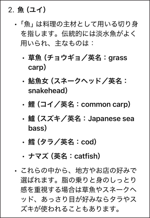 ▼なお、ChatGPTによるとトラディショナルな酸菜魚は淡水魚を使うらしいが、お店によって様々らしい。タラのパターンもあるらしいので、食べた魚はタラだったのだろうか? 味的にはそんな気が……。