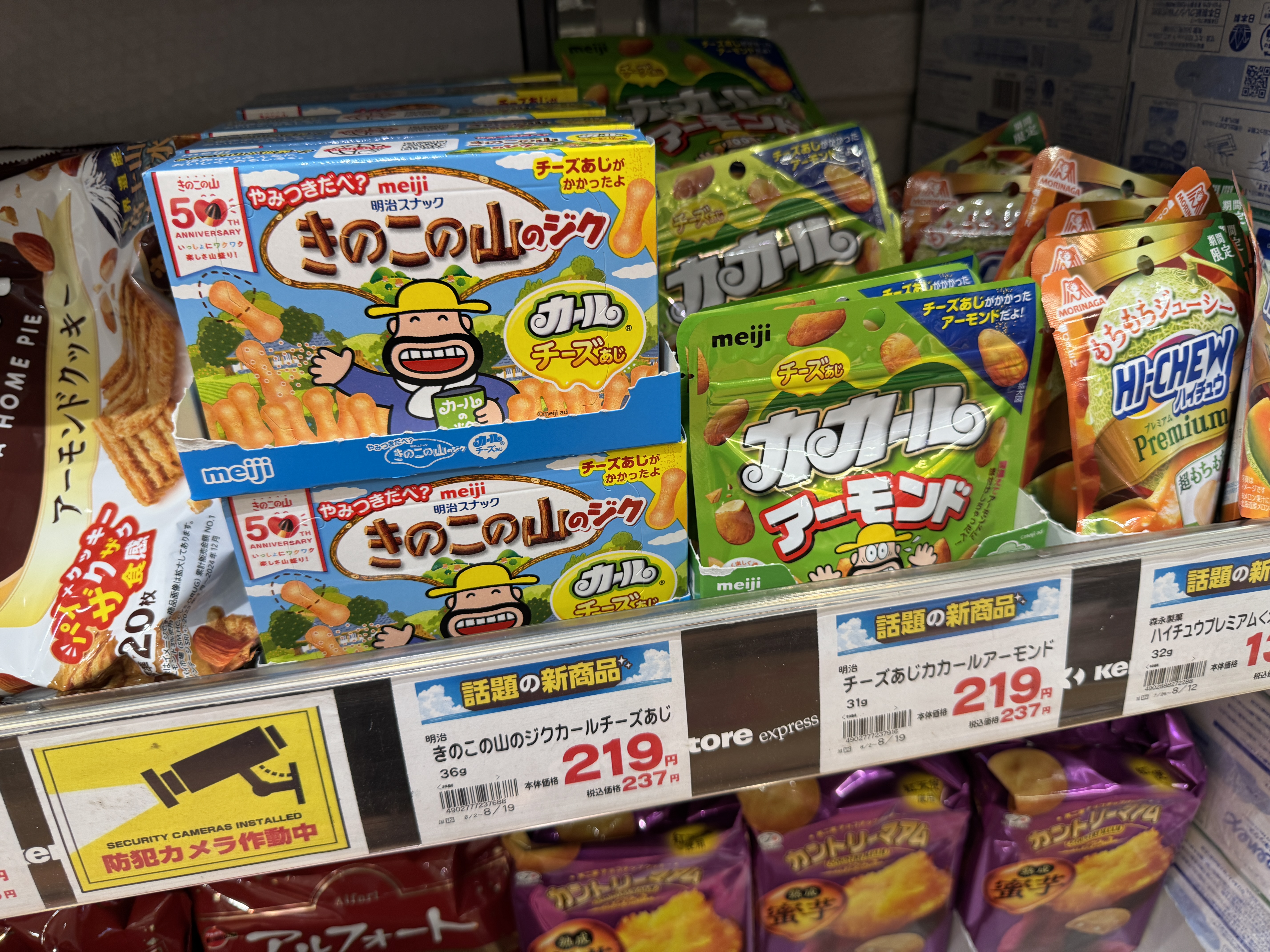 慌てて調べたところ、これら2つは2025年8月5日に発売されたばかりの新商品。『きのこの山のジクカールチーズあじ』が全国、そしてなんと『カカールアーモンド』に関しては “東日本限定発売” らしいのである!!!!!!!
