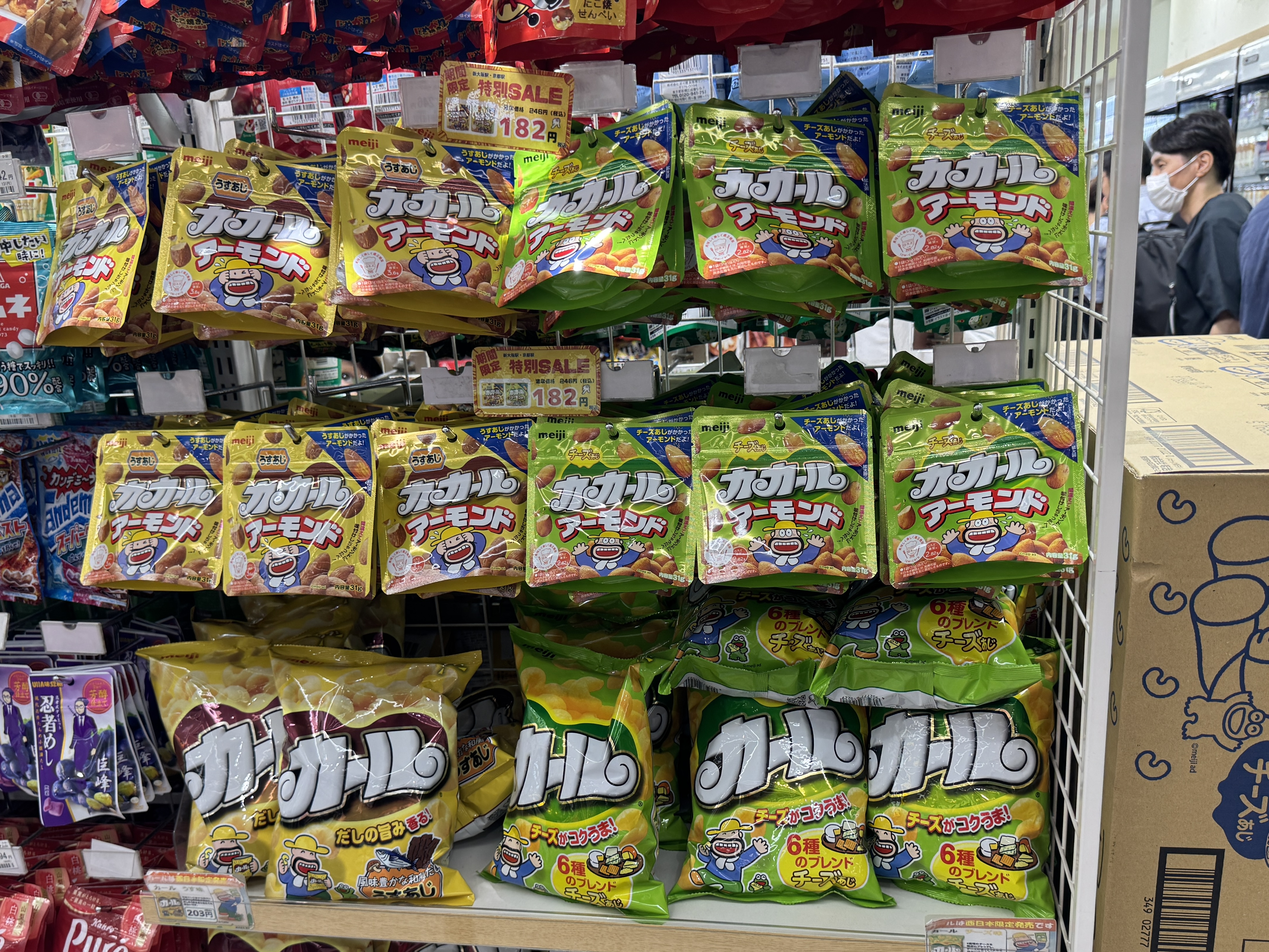 新大阪駅の構内には8月9日現在、あたかも大阪名物ヅラをした『カカールアーモンド』が大量陳列されていたことを謹んでご報告しておく。