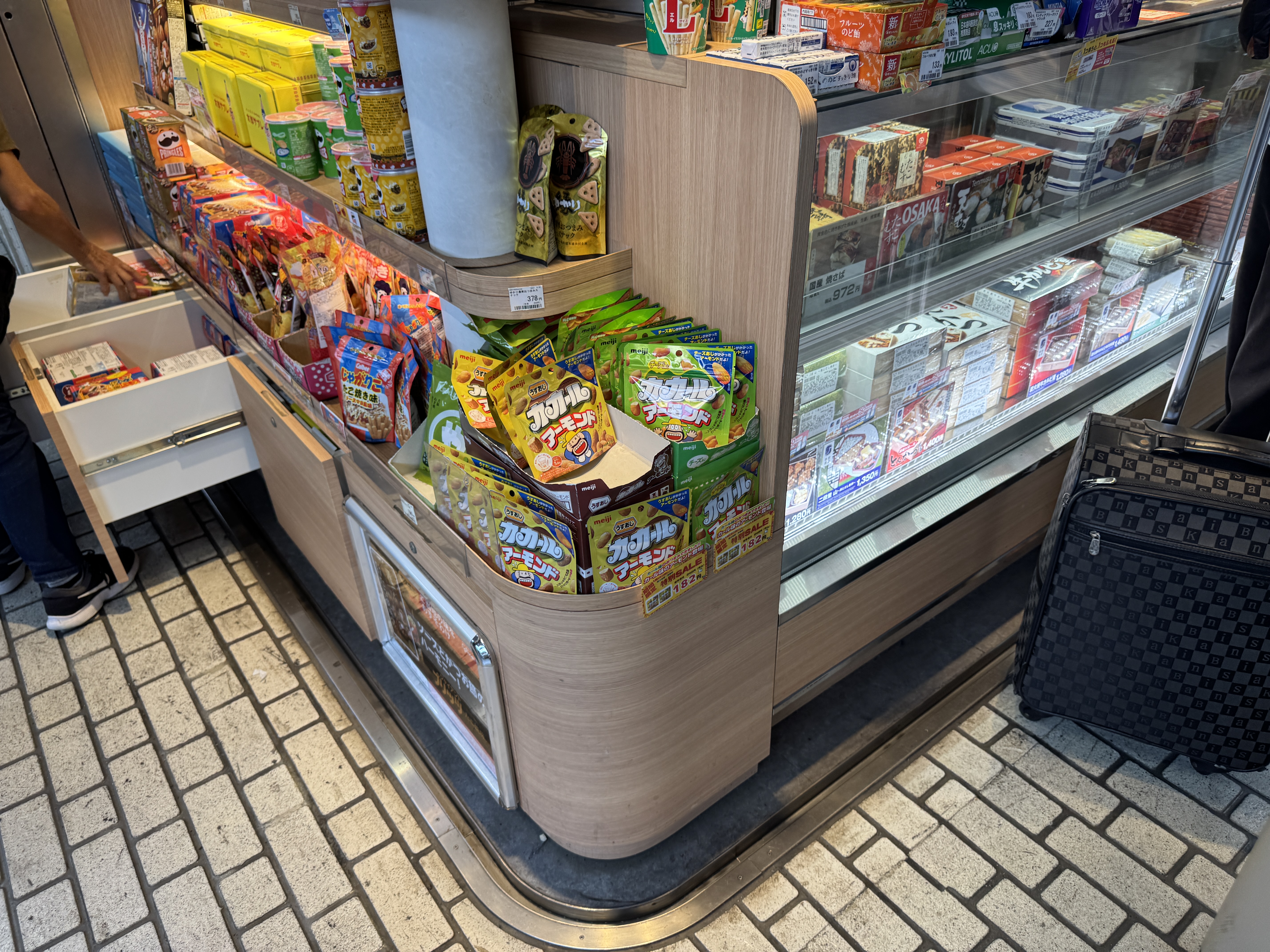 ▼もはやカカールアーモンドしか並んでいない新大阪駅ホーム売店