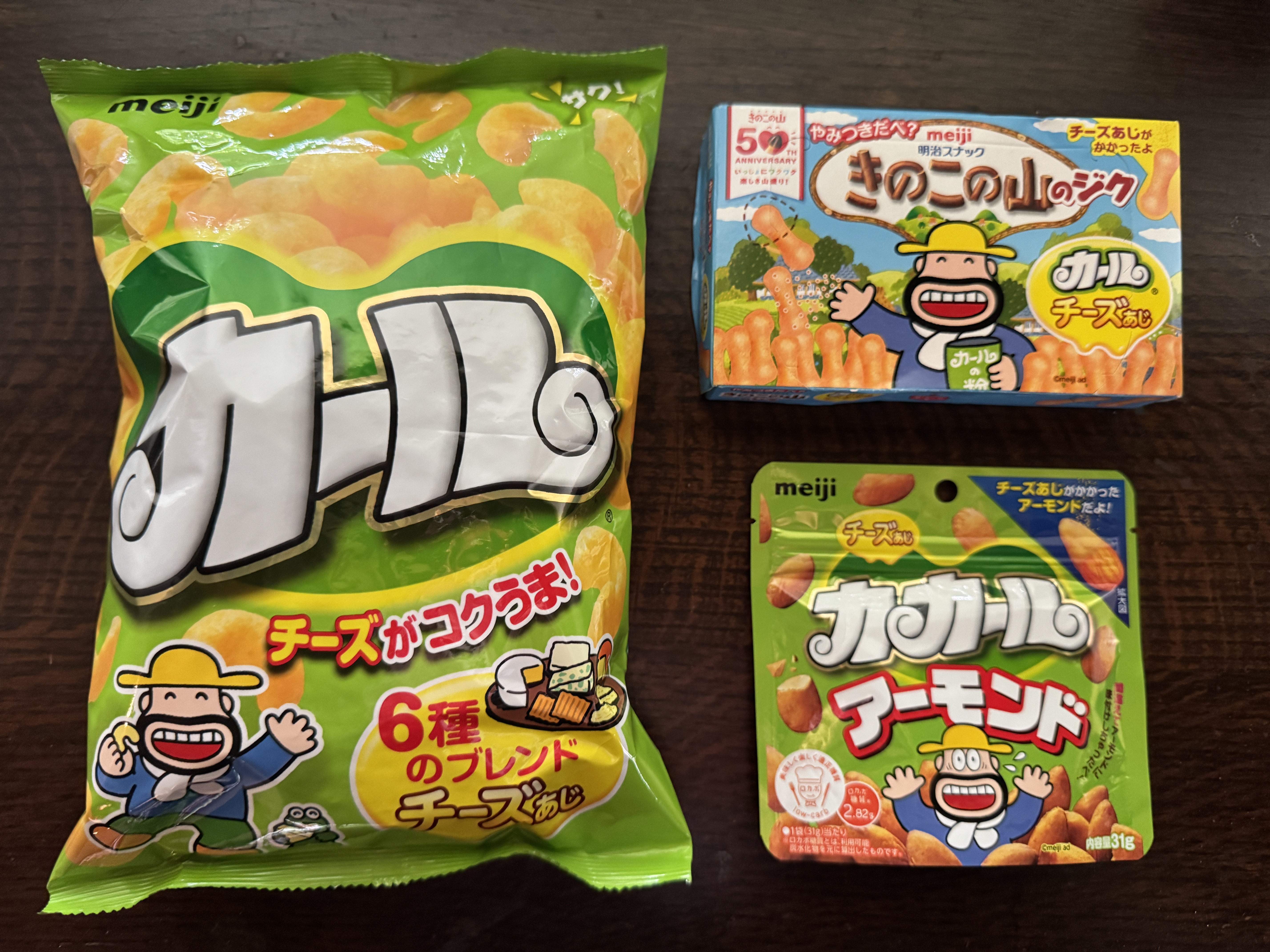 さっそく私は東京で購入した『きのこの山のジクカールチーズあじ』と『チーズあじカカールアーモンド』を実家に持ち帰り、『カール チーズ味』と比較してみることにした。