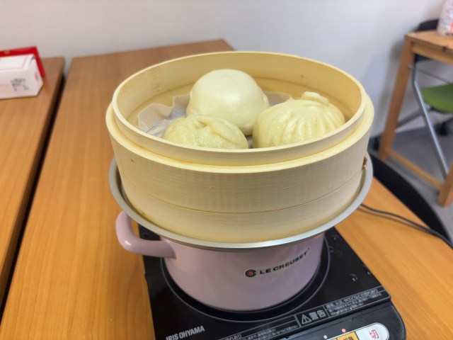 買ったものはいずれも冷蔵商品。差が出ないように、いっせいに蒸篭(せいろ)でホカホカに蒸して食べ比べてみる!