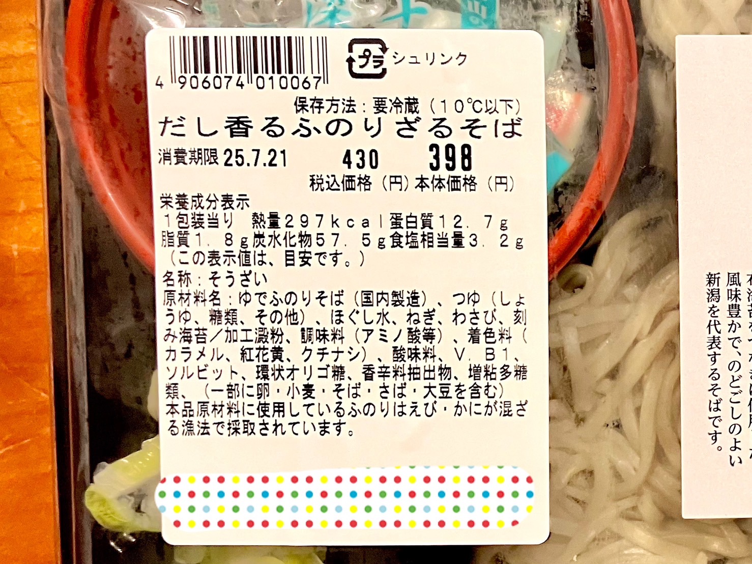 それがこちらの「ふのりそば」。お惣菜コーナーに置かれていて、価格は税抜き398円だった。