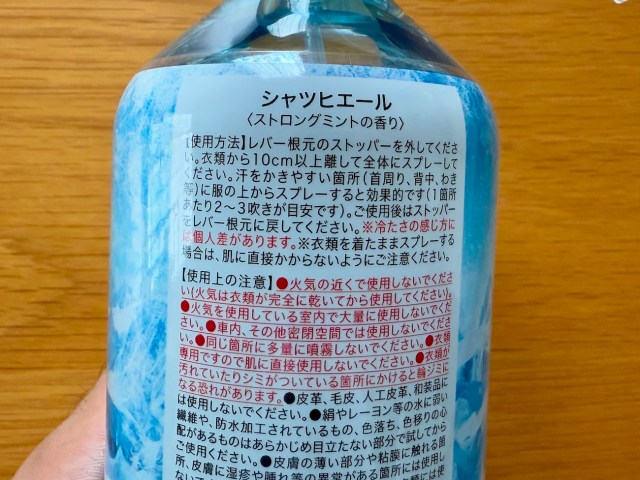 とくに汗をかきやすい首周り・背中・わき等に使うとより効果を実感できるのだとか。シャツを着たままスプレーする場合は「肌にかからないように注意してください」とのこと。