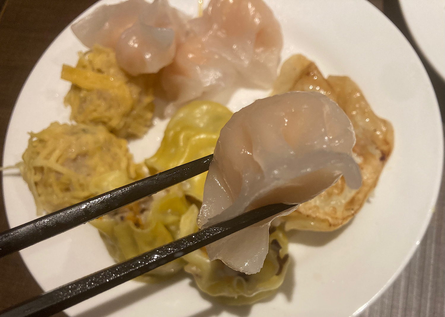 薄皮ヘニョっとタイプのよくある形状で、出来立てというわけでもない。決して目立つおいしさではない、はずなのだが……ビュッフェによくある冷凍餃子とは一線を画すものがある気がするのだ。
