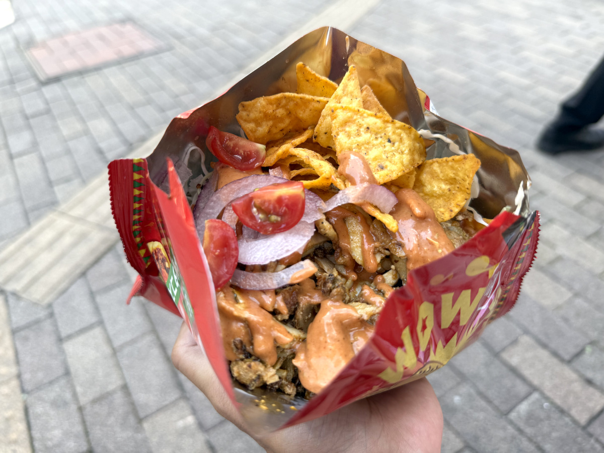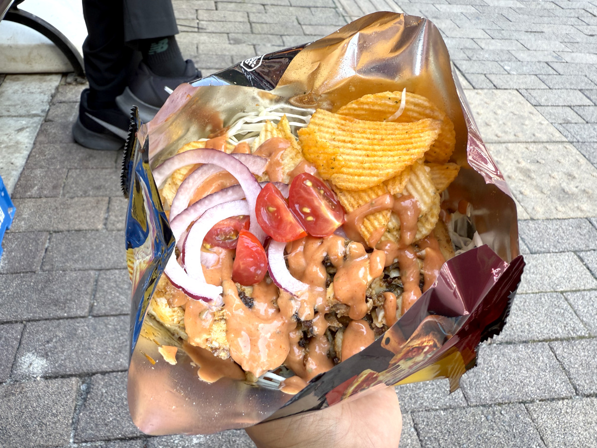 そんな私がちょっと前から食べてみたかったのが、アメリカのフードトラックにスナック菓子を持ち込む例のヤツ! 正式名称はわからないが、ショート動画などで見かけるアレがめちゃめちゃウマそうだったのである!!