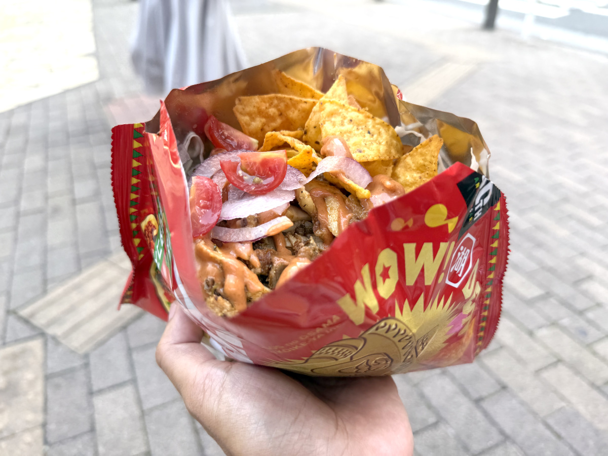 そんな私がちょっと前から食べてみたかったのが、アメリカのフードトラックにスナック菓子を持ち込む例のヤツ! 正式名称はわからないが、ショート動画などで見かけるアレがめちゃめちゃウマそうだったのである!!