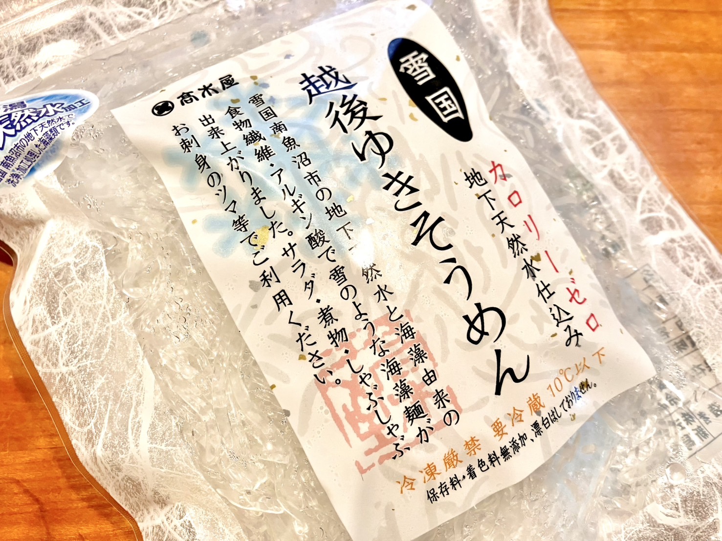 袋の説明文によると、どうやら海藻由来の成分と南魚沼市の天然水を使って作られた食べ物らしい。特に下処理などは必要なく、軽く洗えばそのまま食べられるそうだ。
