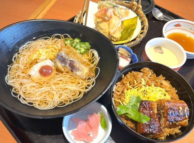 奈良つながりで、奈良名物であるそうめんが入った(使用されているそうめんは揖保乃糸・兵庫県産だが)フェアメニュー『鰻ご飯と鱧そうめん膳(税込1868円)」を注文することにした。