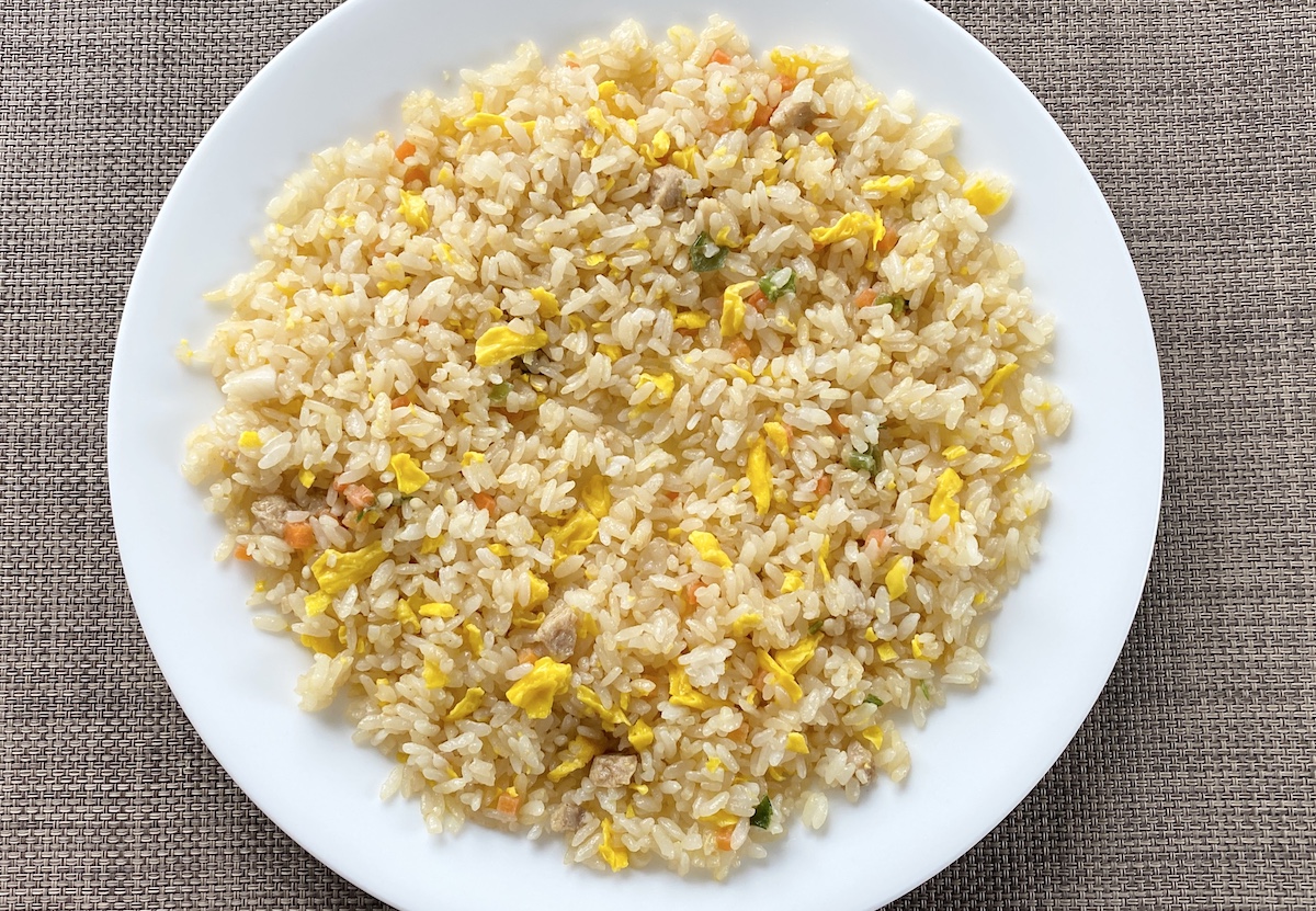食べてみたら柔らかいチャーシューにふっくら卵がいるな……そう思った次の瞬間には、ネギやニンジンのシャッキリ感も同時に攻めてきた。レンチンの炒飯はあまり外すことないイメージのなか、しっかりとストライクゾーンに入れている印象を受ける。