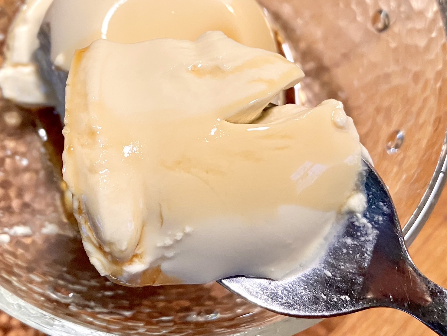 一瞬大豆の風味が感じられるけれど、それでもなお「これはプリン」と認識できるくらいの濃厚な甘さだ。